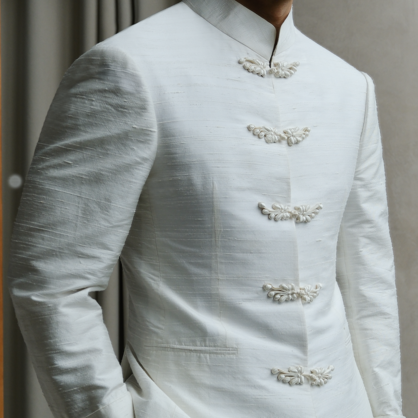 The changshan traces back to traditional Chinese menswear, worn as formal attire through the late Qing dynasty and early 20th century. Reworked with modern cut and structure, it brings heritage into a present-day wardrobe.